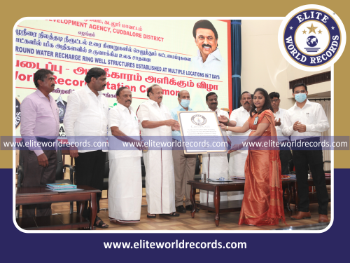 Most Roof-Top Rain Water Harvesting Ground Water Recharge Ring Well Structures established at Multiple Locations in 7 Days